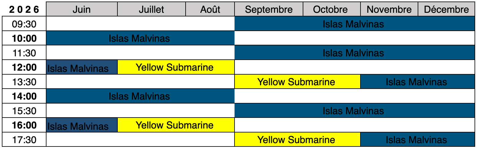 L’heure de départ est sujette à modifications en fonction des conditions météorologiques.